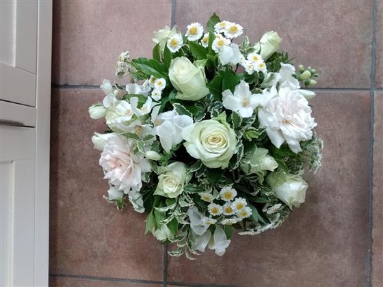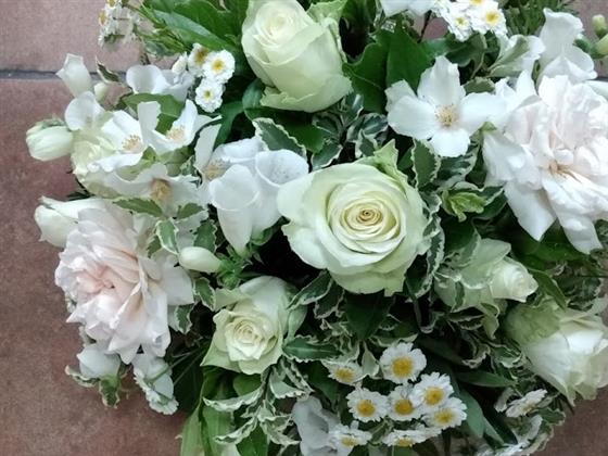 A beautiful stylish flower arrangement in creams and greens suitable for any ocassion.